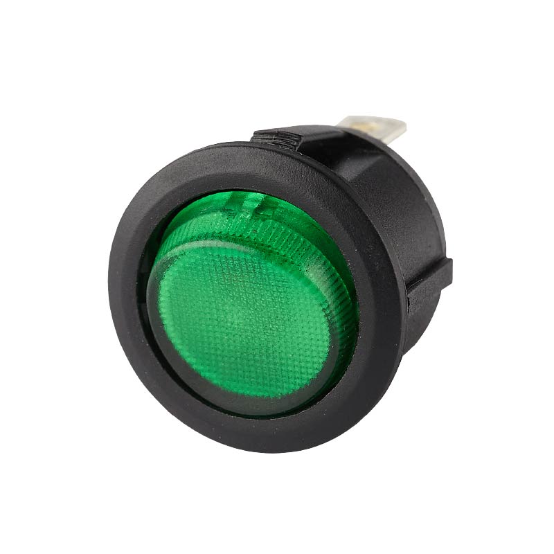 Grøn Vippekontakt med 3 ben 12V, 20A Ø20 3xfladstik 4,8mm