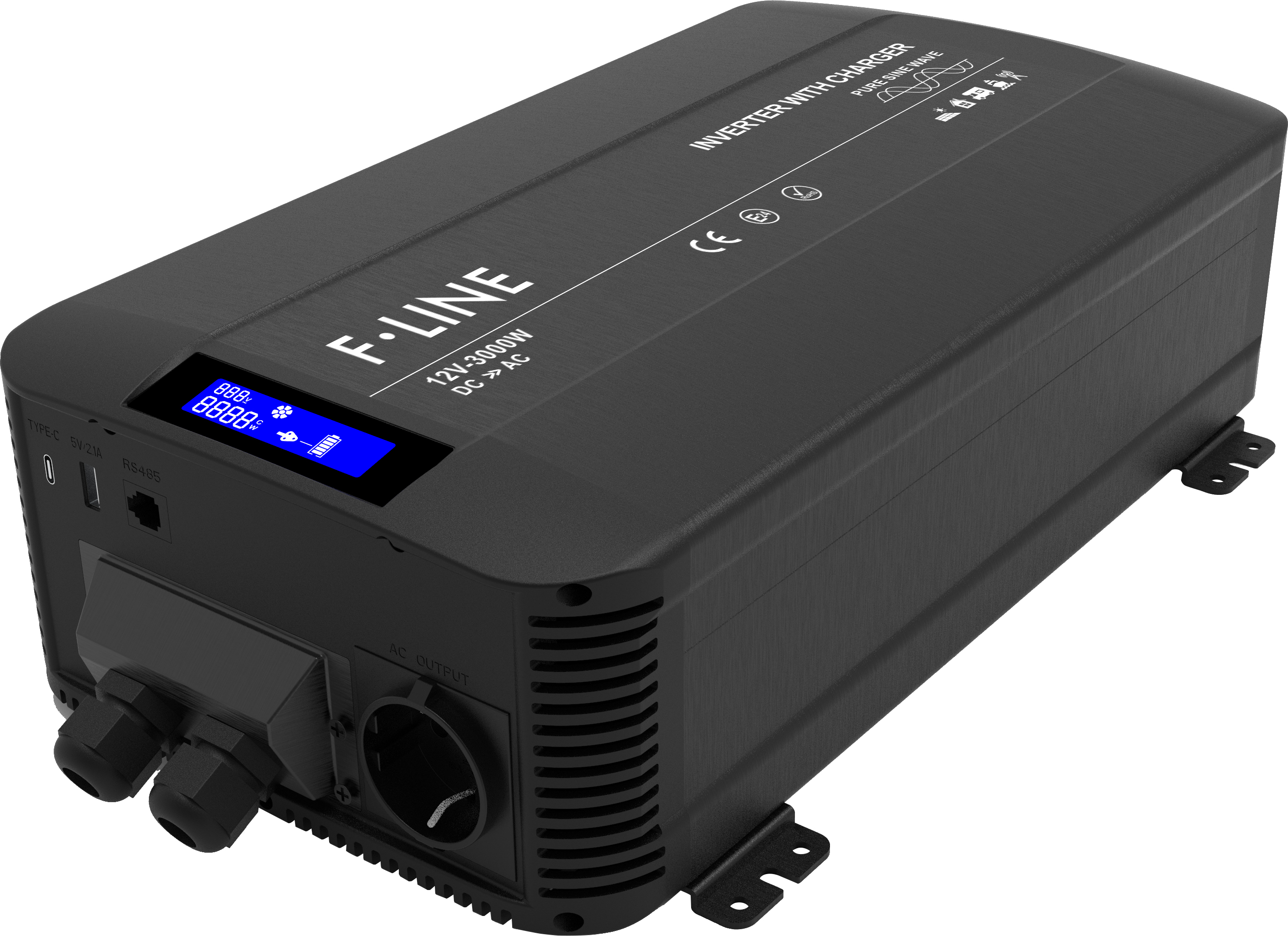 DC-AC Ren sinus inverter. 12V-230V. 3000 W (6000W Peak) med ATS og landstrøm
