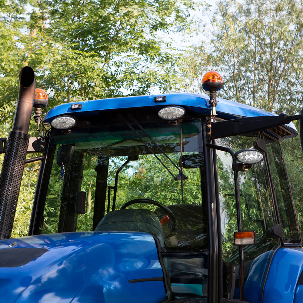 Oval LED arbejdslampe med lygtehus i sortlakeret aluminium, linse af polycarbonat og beslag af rustfrit stål. Monteret med DT-stik.