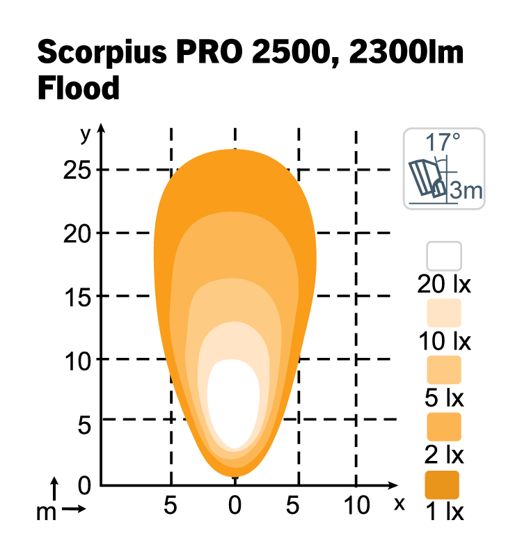 Den klassiske arbejdslampe, redesignet fra bunden for at være endnu bedre egnet til byggeri. Scorpius PRO 2500 er bygget til at håndtere enhver opgave du giver den. Denne arbejdslampe er velegnet til 12-24V-systemer og har høj vibrationsmodstand, en ridsefast belægning og et fremragende lumen pr. watt-forhold. Scorpius PRO 2500 har en operationel lumen udgang på 2300 målte lumen.