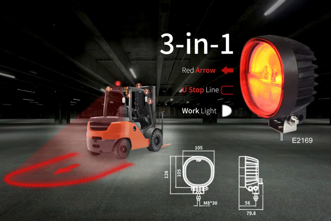 Gaffeltrucklys med Rød U-linje. Perfekt til at afgrænse sikkerhedsafstand fra truck på lager.