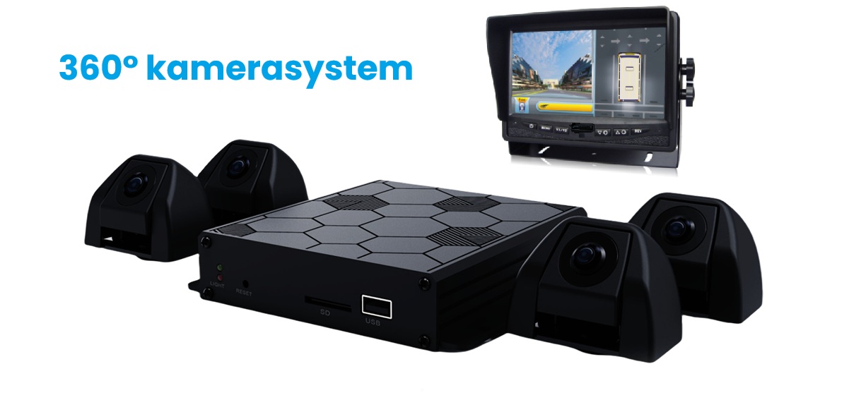 Komplet 360° sæt med 7" LCD skærm i farver og 4 kameraer.